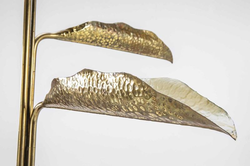 Struttura in ottone e ottone martellato, alluminio laccato e base in marmo. Prod. Arredoluce, Italia, 1950 ca.