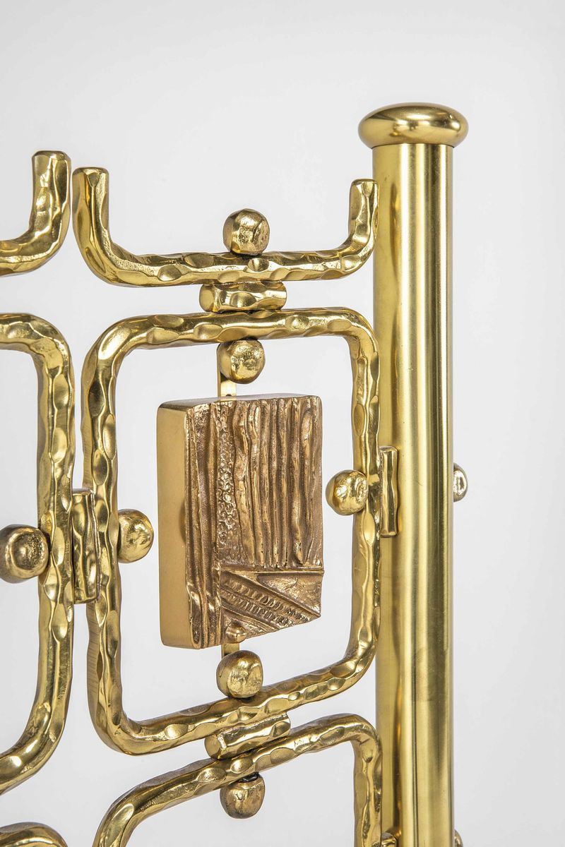 Struttura in ottone e metallo laccato. Testiera in ottone con piastre scultoree in fusione di bronzo ad opera di Arnaldo Pomodoro. Prod. Arredamento Borsani, Italia, 1958