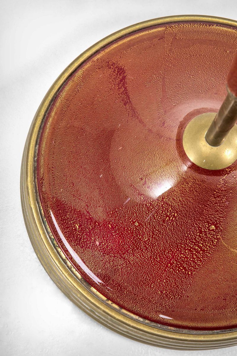 Struttura in vetro Laguna ed ottone. Paralume in tessuto.