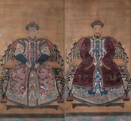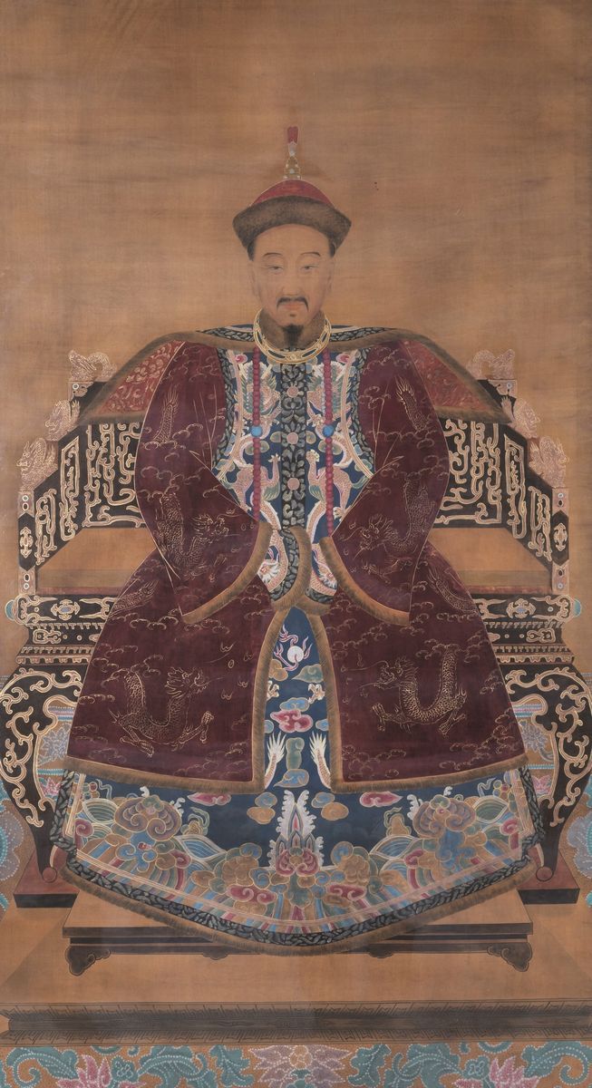 Coppia di grandi dipinti su seta raffiguranti Imperatore e Imperatrice, Cina, Dinastia Qing, epoca Qianlong (1736-1796)