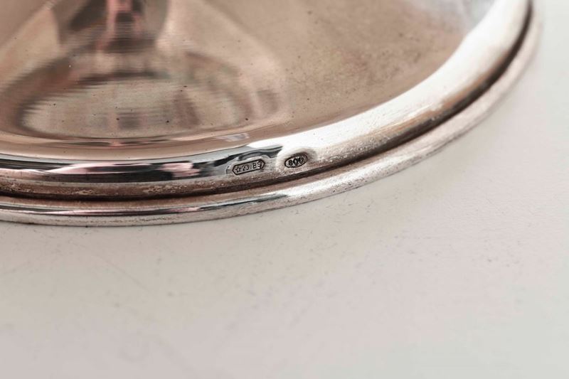 Alzata centrotavola. Argento fuso e sagomato e traforato. Argenteria Italiana del XX secolo. Argenteria “Leonessa”, Bresc [..]