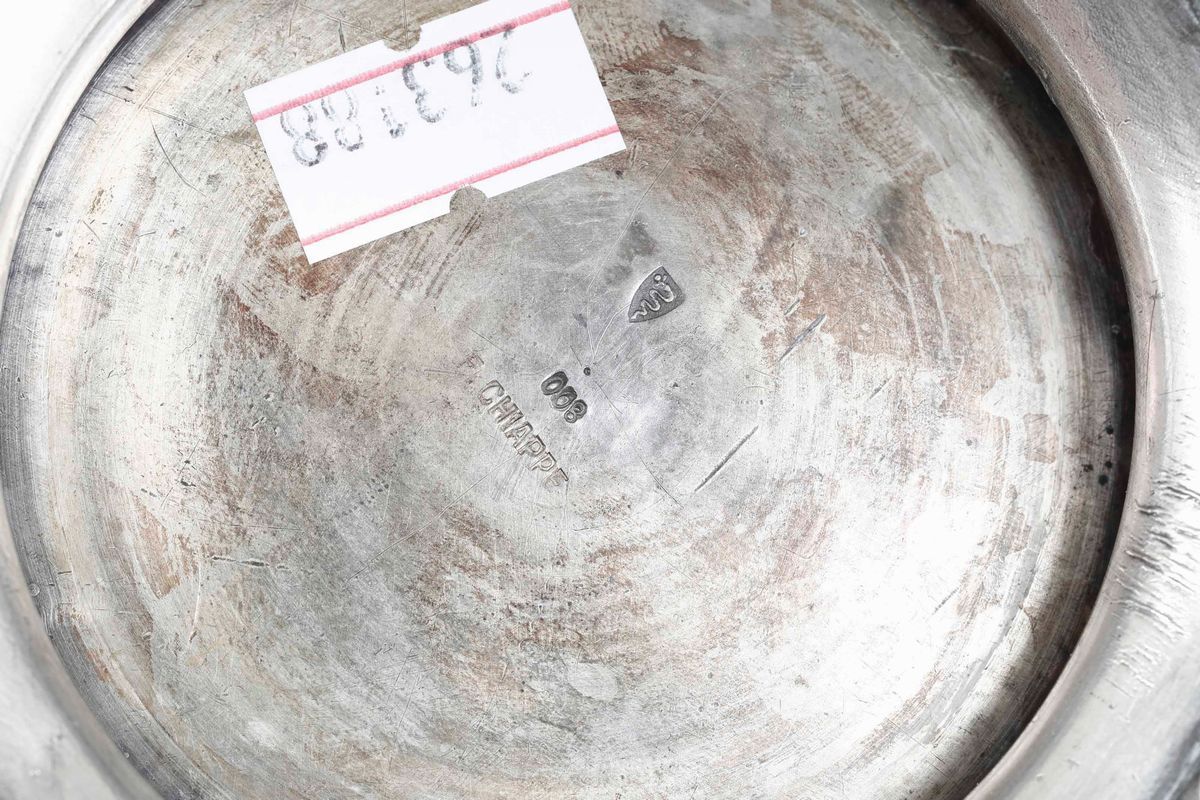 Cafettiera teiera e lattiera in argento fuso, sbalzato e cesellato. Argenteria milanese del XX secolo, Argentiere Miracoli per gioielleria Chiappe, Genova