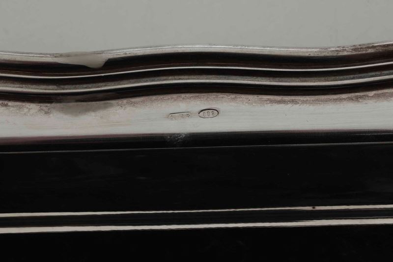Coppia di legumiere. Argento fuso, sagomato e cesellato. Argenteria artistica veneta del XX secolo. Argentiere Rino Greggio, [..]