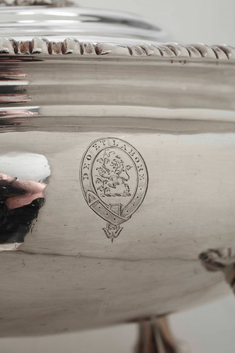 Coppia di salsiere in argento fuso, sbalzato e cesellato.Inghilterra, bollo della città di Londra per l'anno 1816, argentiere [..]