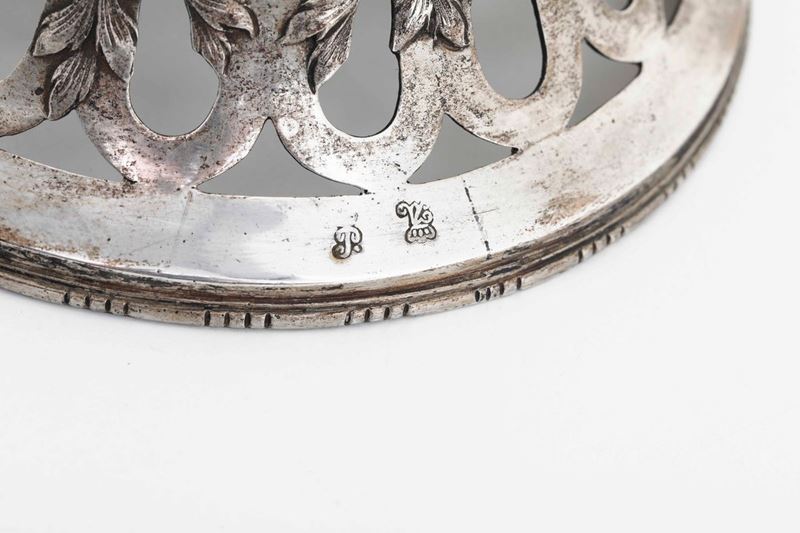 Coppia di vasi in argento fuso, traforato e cesellato e vetro. Marchi di fantasia ad imitazione dell'argenteria francese [..]