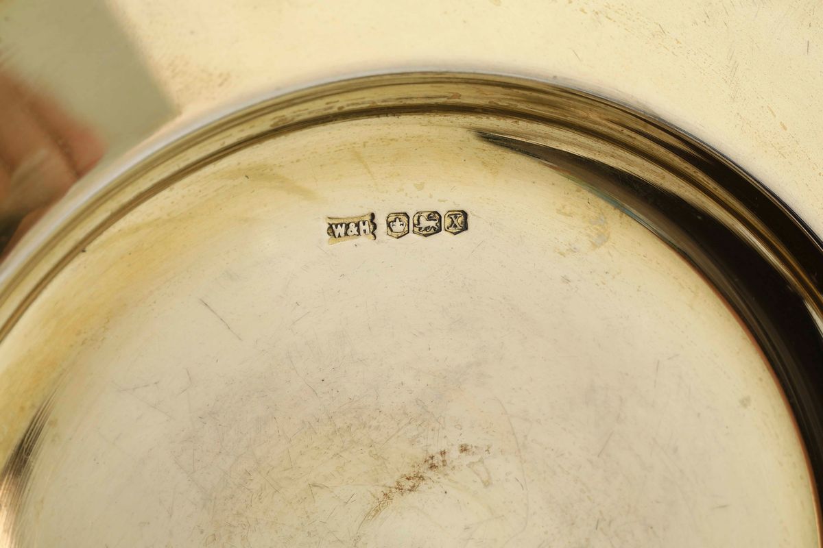 Dodici piatti argento vermeille fuso. Differenti manifatture inglesi del XX secolo, marchi della città di Londra e della [..]