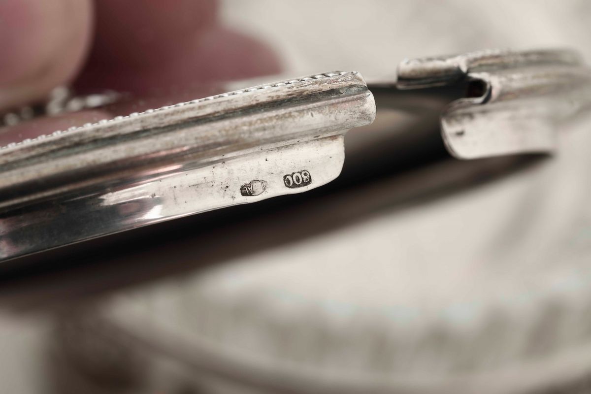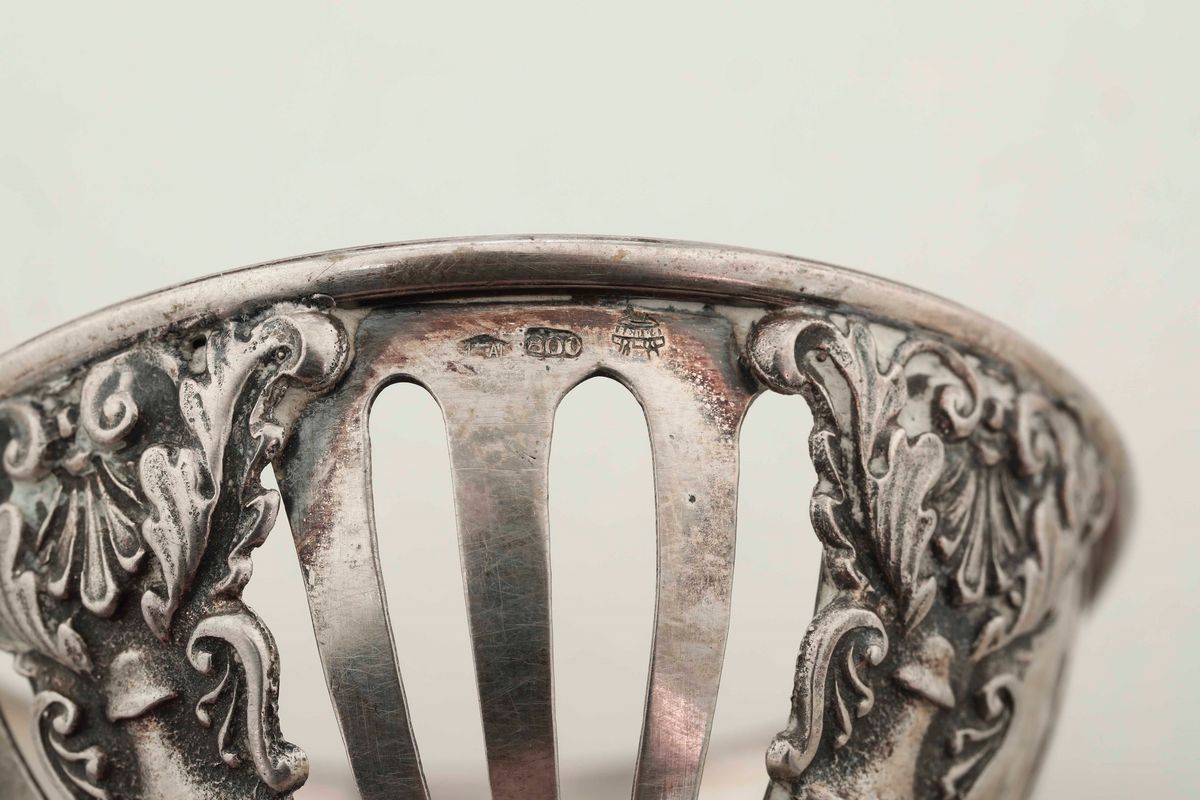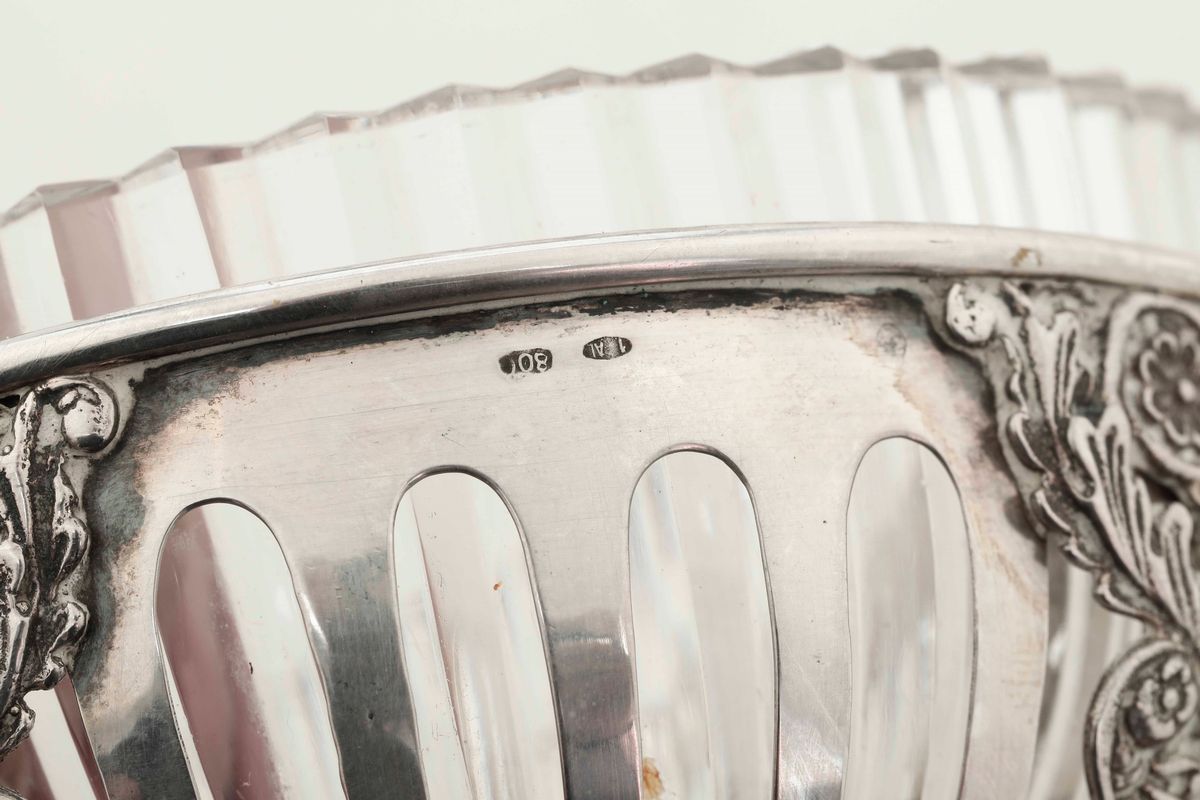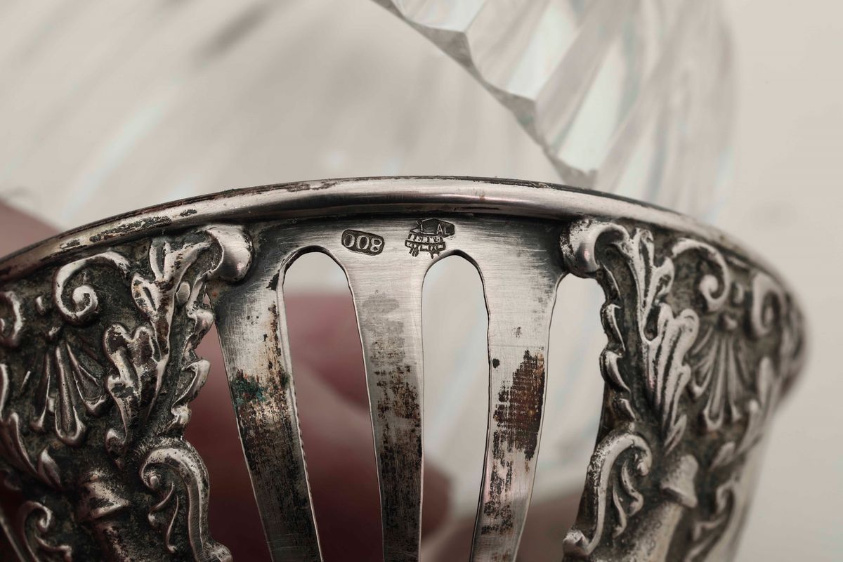Lotto di due formaggiere e quattro saliere in argento e vetro. Argenteria italiana del XX secolo. Argentiere Cesa, Alessandria