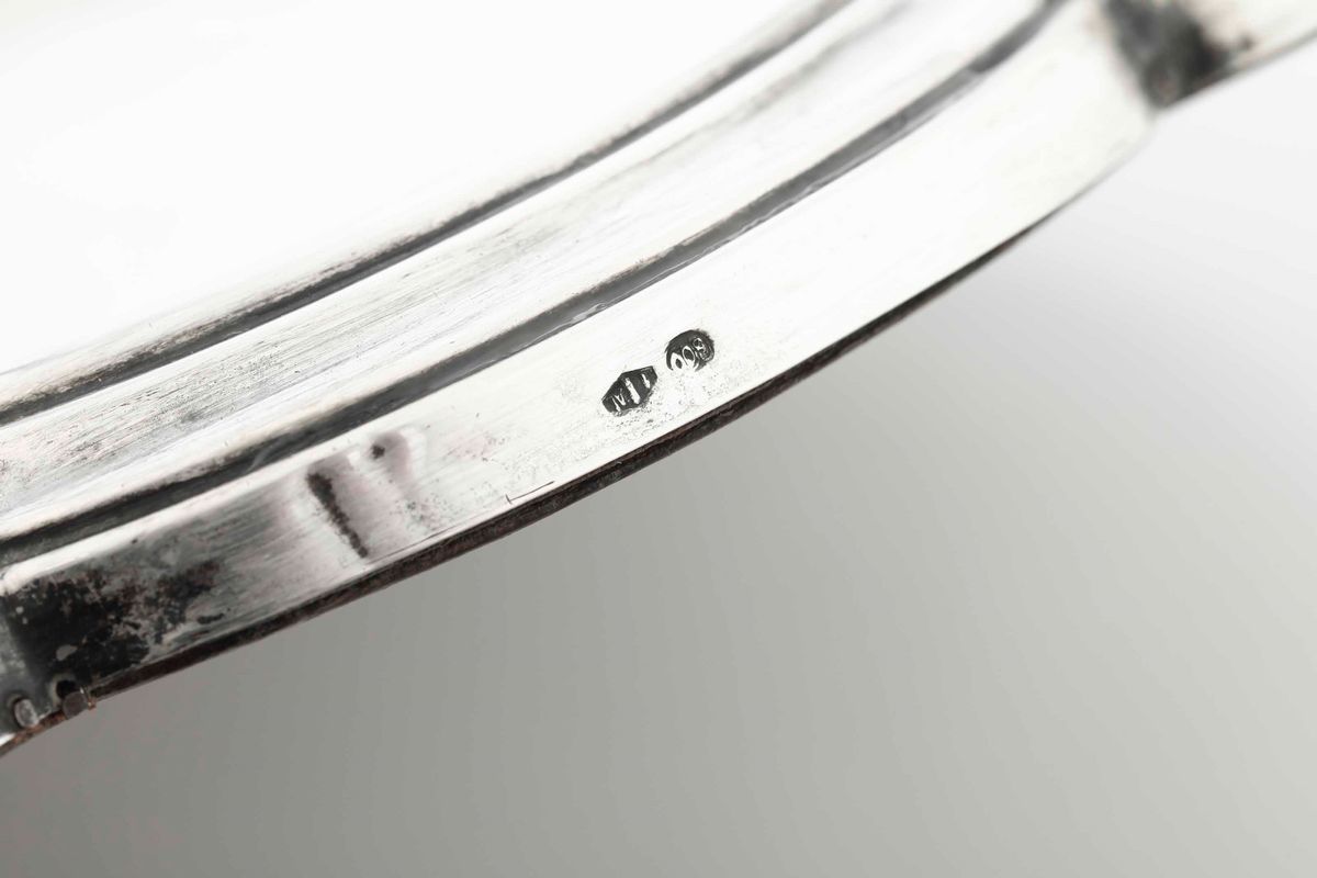 Presentoire in argento e specchio. Argenteria italiana del XX secolo. Bollo con fascio littorio in uso dal 1935 al 1945. [..]