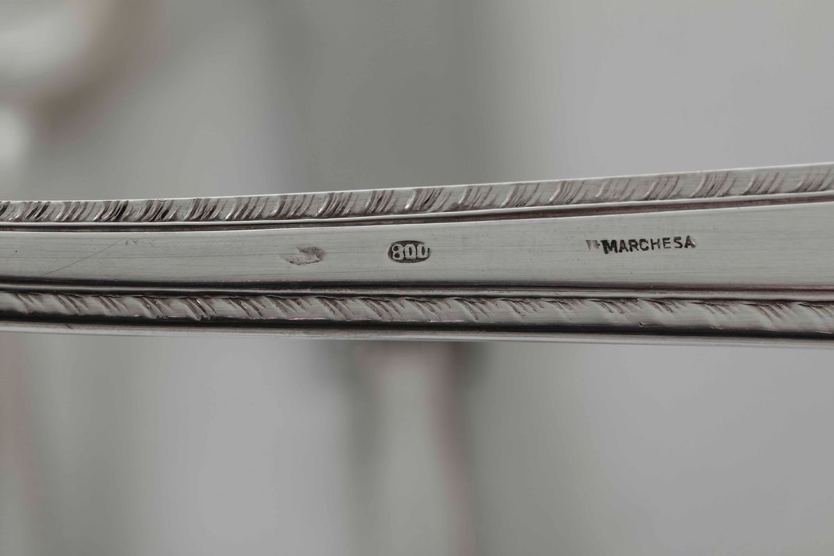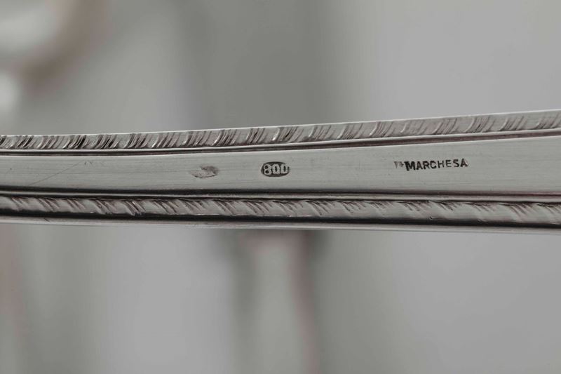 Servizio di posate argento fuso e cesellato. Argenteria italiana del XX secolo. Argentiere Cepollini Marchesa, Torino