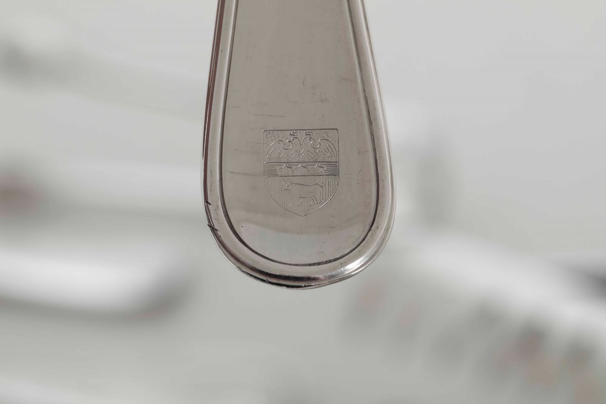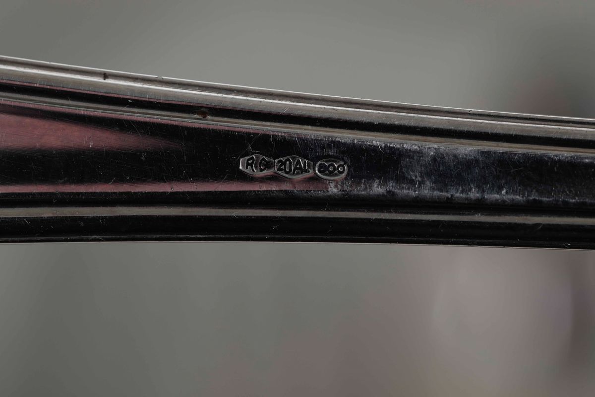 Servizio di posate in argento. Argenteria italiana del XX secolo. Argentiere Ricci & C., Alessandria