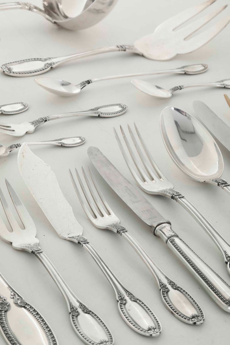 Servizio di posate in argento da 12 persone. Argenteria italiana del XX secolo. Argentiere Clementi, Bologna per Gioielleria [..]