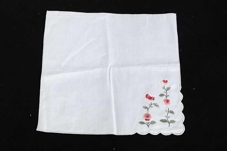 Lino, alto bordo ricamato in policromia con rose a punto pieno