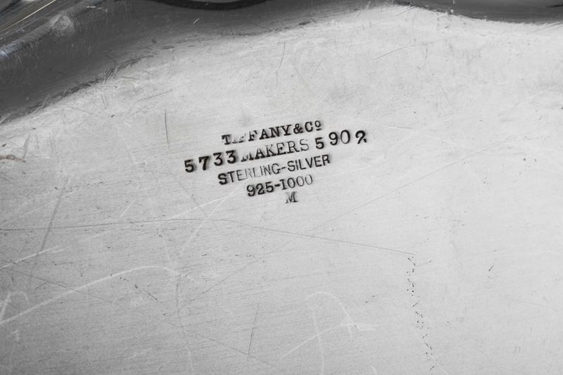 Tre vassoi in argento 925 fuso e cesellato. Tiffany & Co., USA prima metà XX secolo