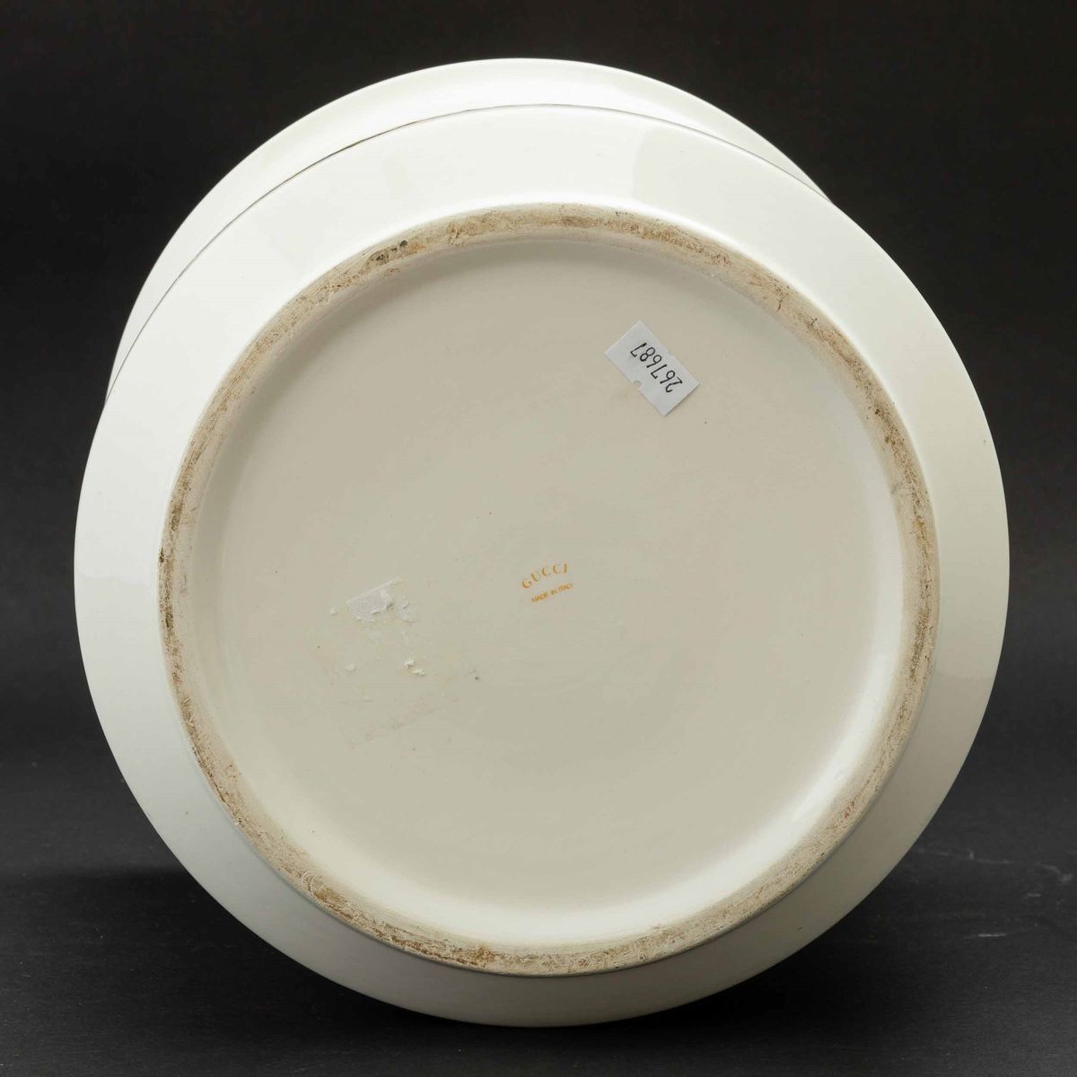Porcellana. Marca: “Gucci Made in Italy” in arancione. Dimensioni: altezza cm 22,2; diametro cm 25,8