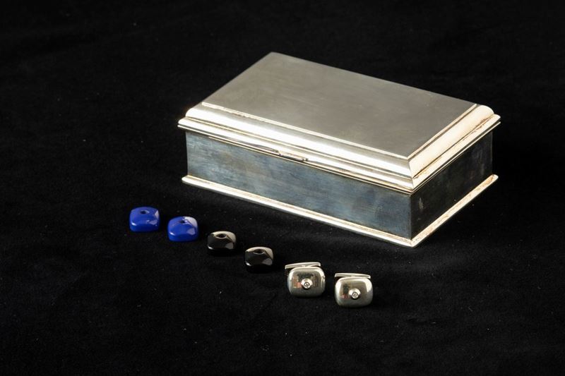 Bottoni da polso con scatola in metallo argentato