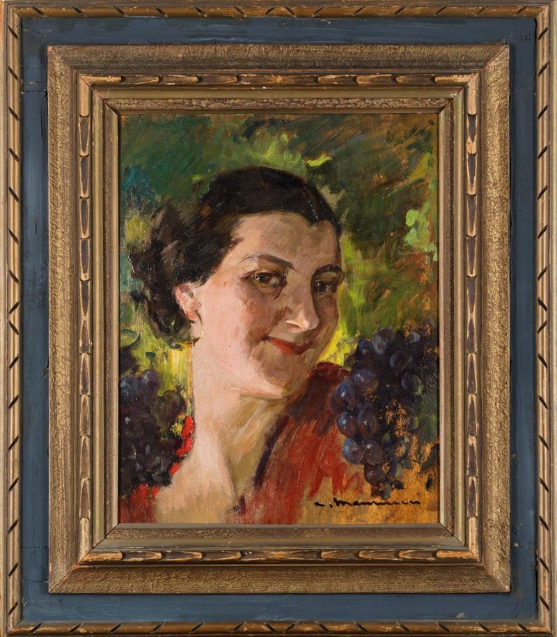 olio su tavola, cm 39,5x31, firmato in basso a destra e datato 1937, iscrizione al retro