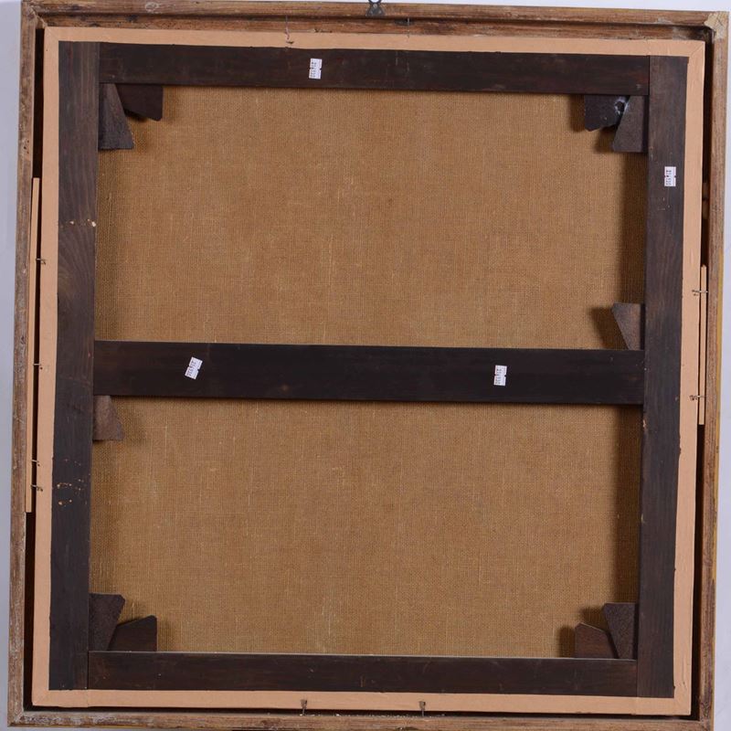 olio su tela, cm 75x72, firmato in alto a sinistra