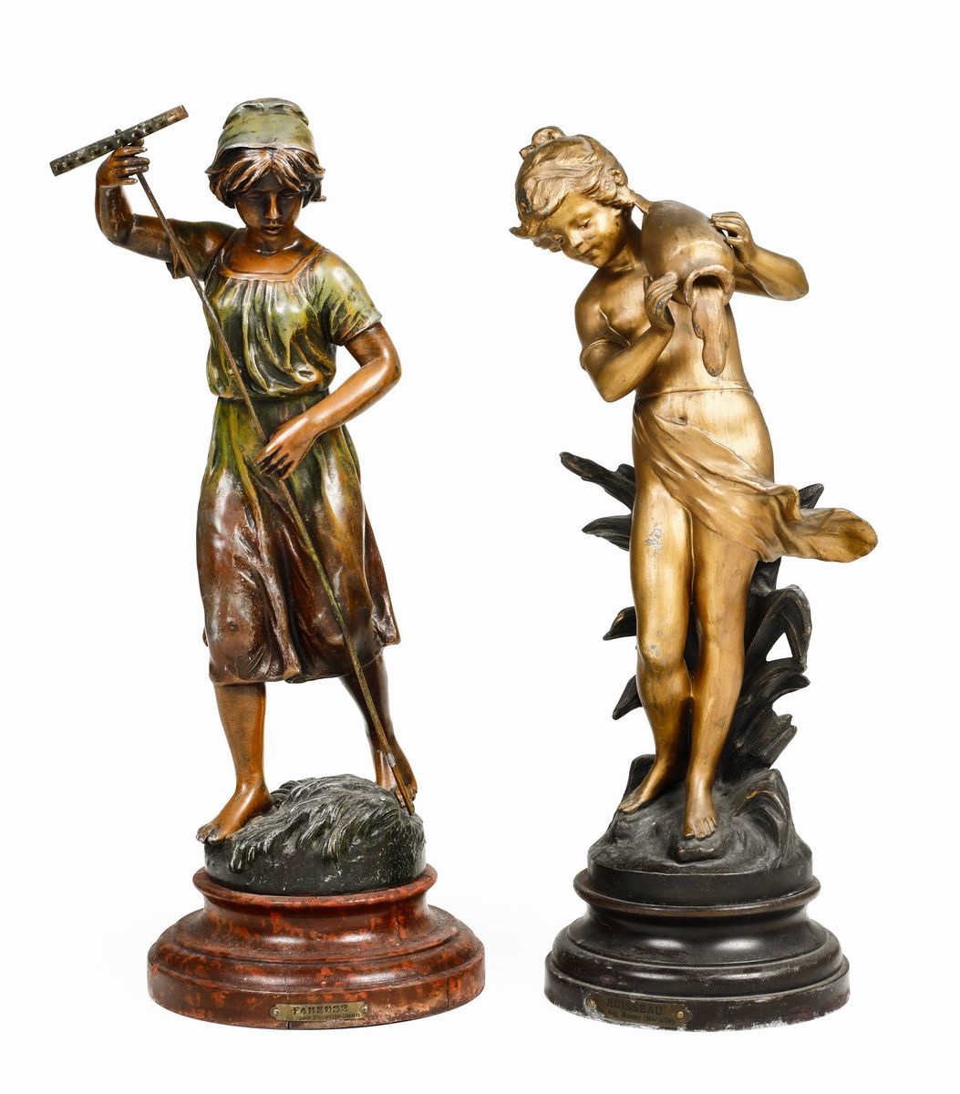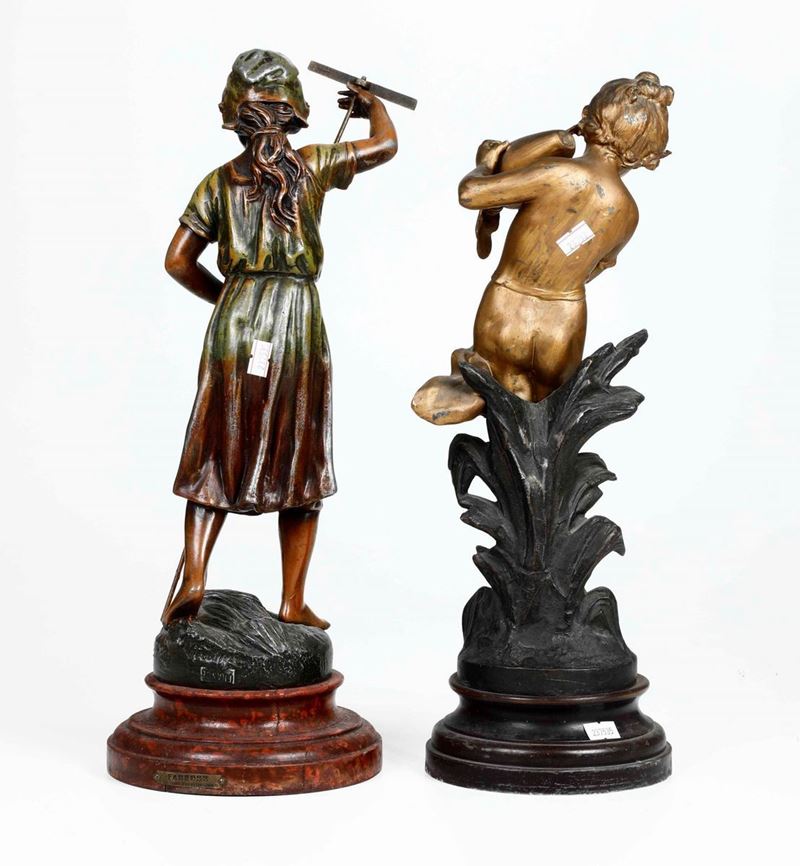 Due sculture di fanciulli in bronzo. Fonditore francese del XX secolo