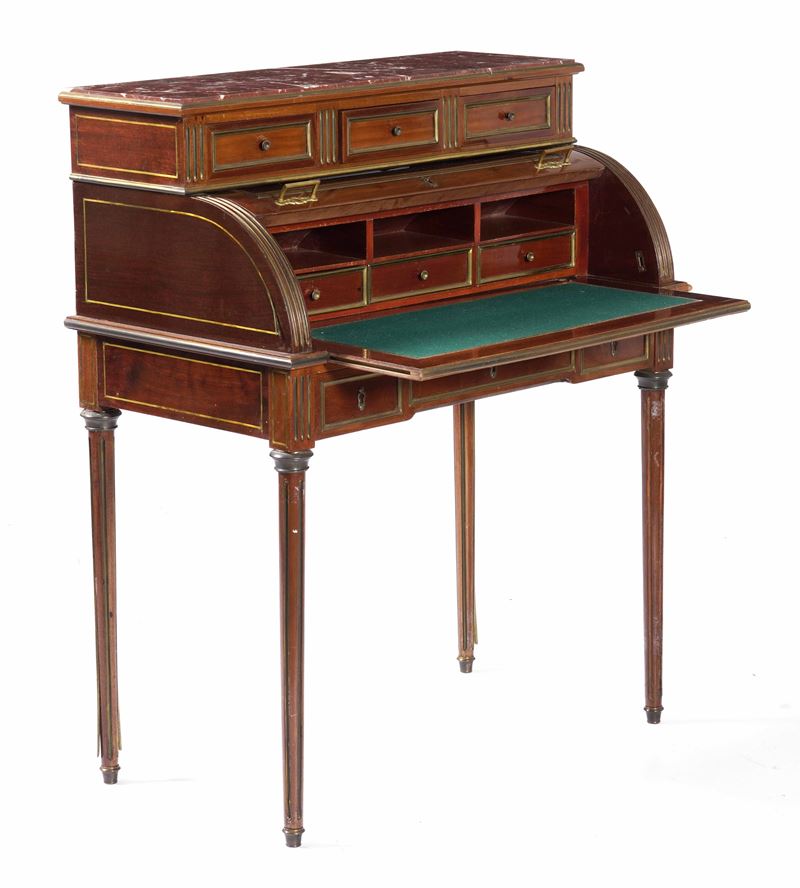 Scrivania a rullo in mogano. Francia, stile Luigi XVI. XIX secolo
