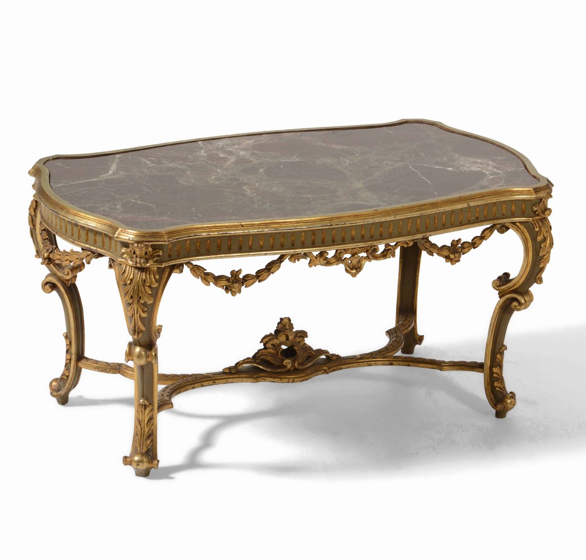 Tavolino basso in legno intagliato e dorato, XIX-XX secolo