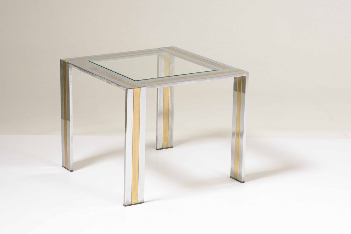 Tavolino da salotto in acciaio e vetro. XX secolo