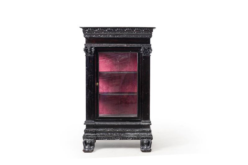 Vetrina in legno intagliato e scurito. Italia meridionale, XIX-XX secolo