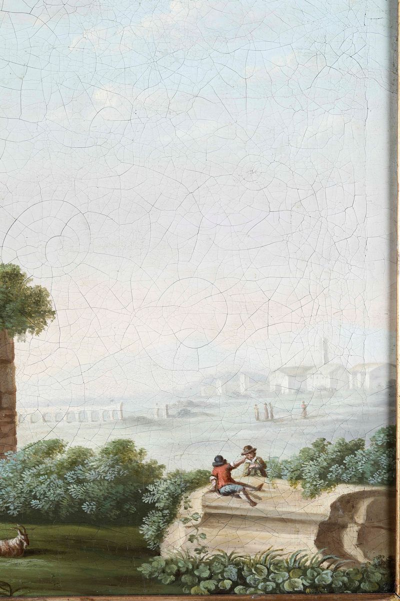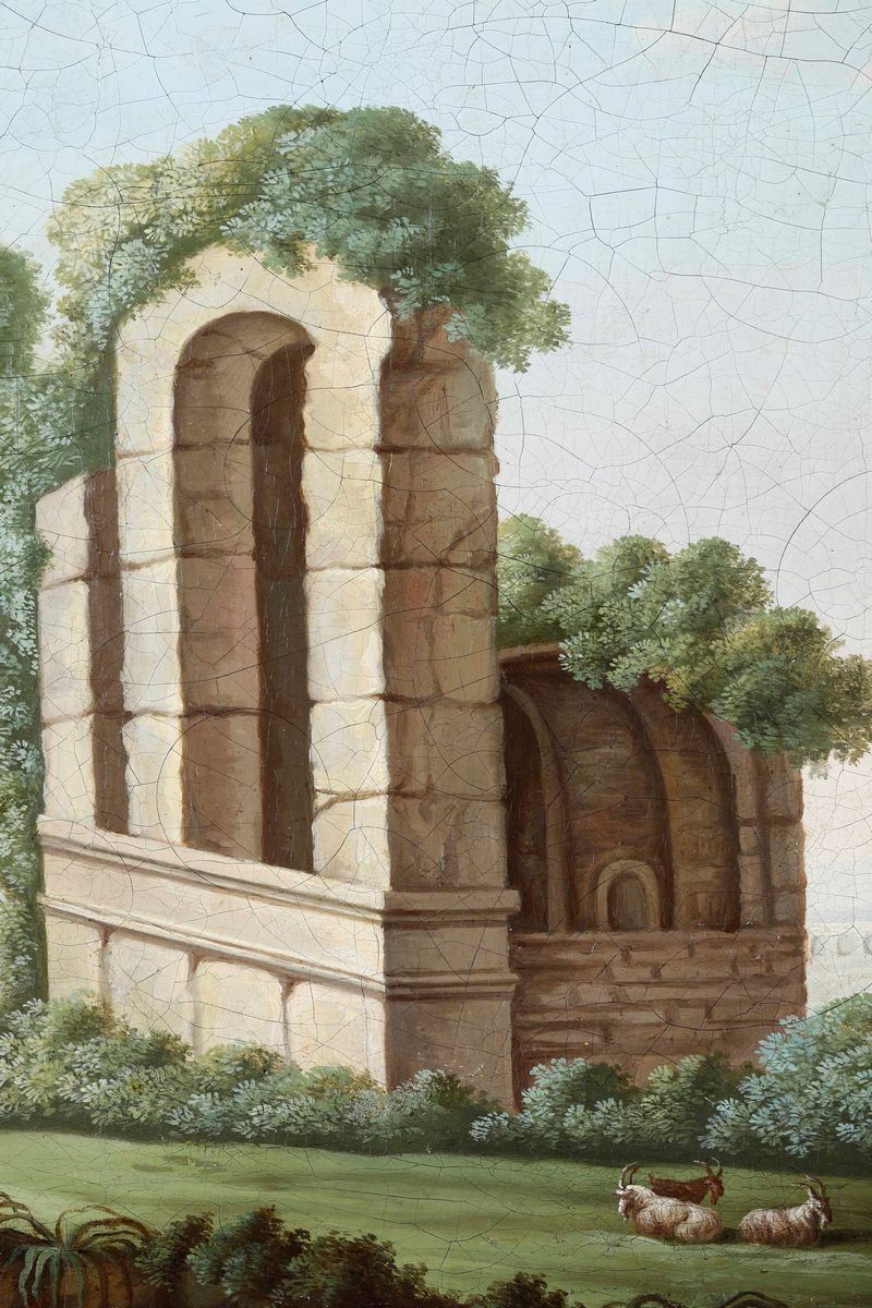 Scuola del XVIII secolo Paesaggio con rovine classiche e pastori