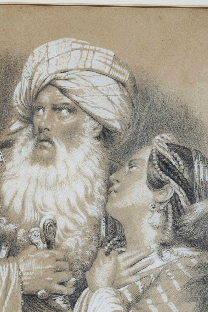 Scuola francese del XIX secolo Figura con turbante con fanciulla