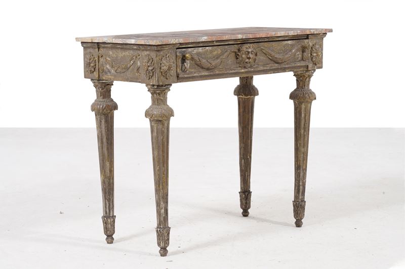 Consolle in legno intagliato e dipinto. XVIII secolo