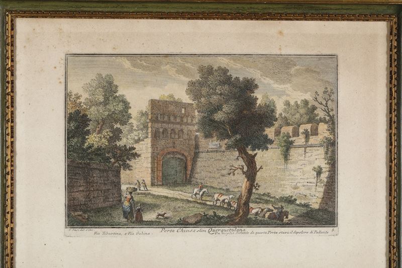Gruppo di quattro incisioni a colori con vedute Roma (riproduzioni)