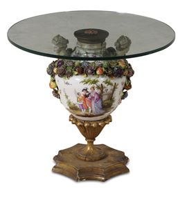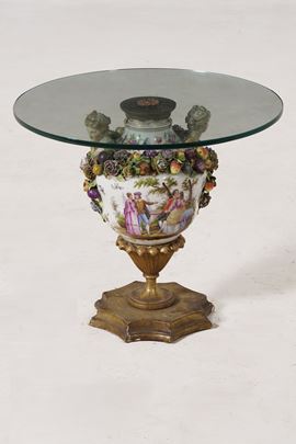 Tavolino con fusto ricavato da un vaso in porcellana. XIX-XX secolo