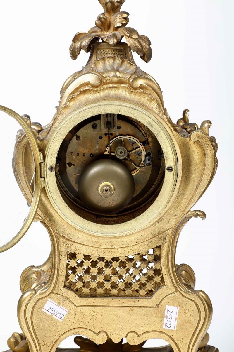 Pendola da tavolo in bronzo dorato. Francia XIX secolo