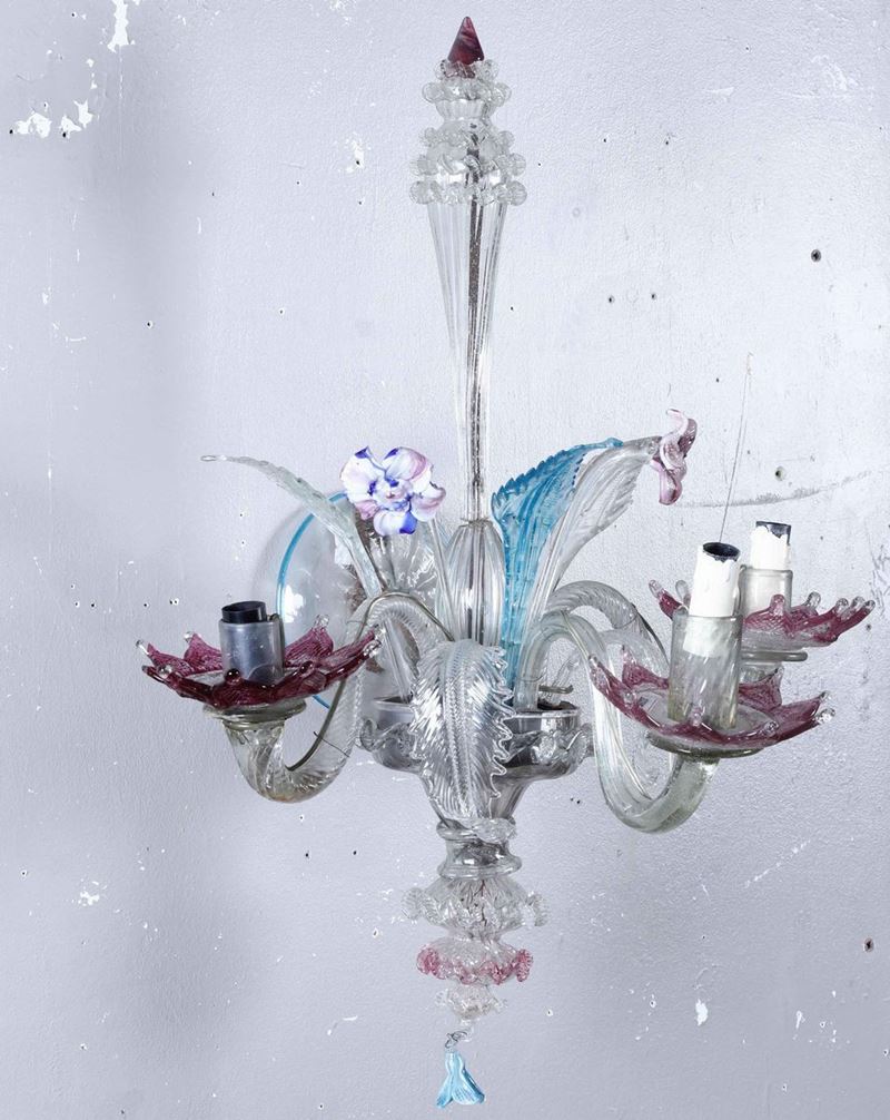 Tre appliques in vetro policromo di Murano. XX secolo