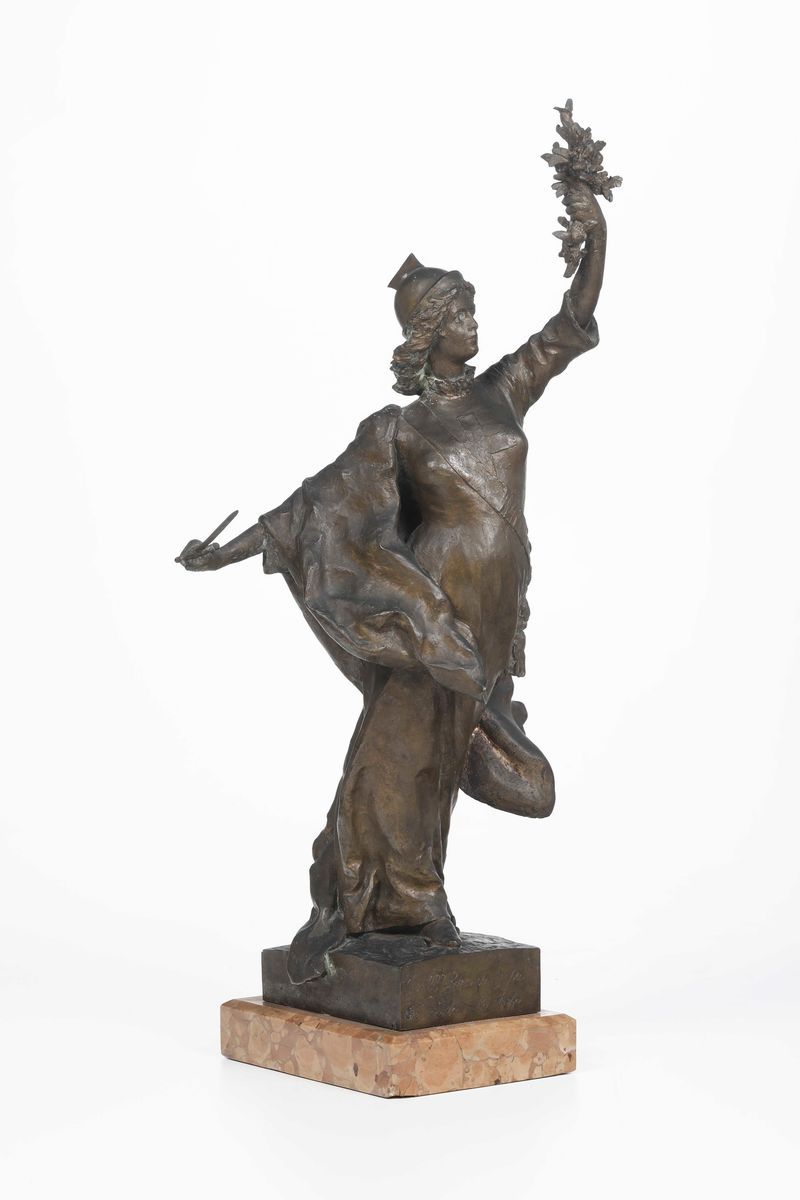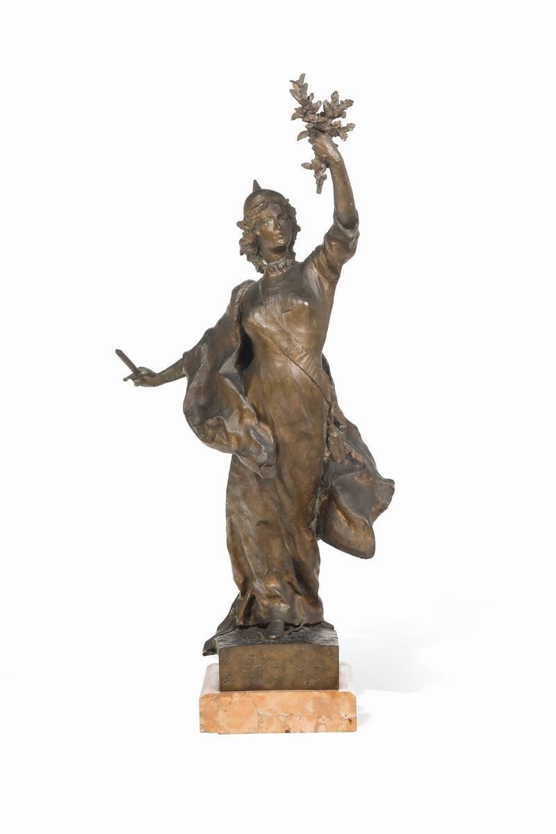 allegoria della vittoria, bronzo. Firma e data incisi alla base