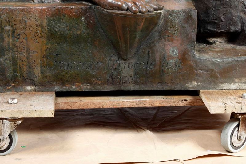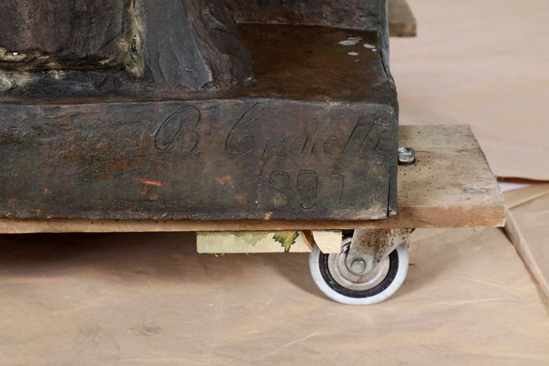 scultura in bronzo fuso e patinato, firmata e datata 1895 alla base.
