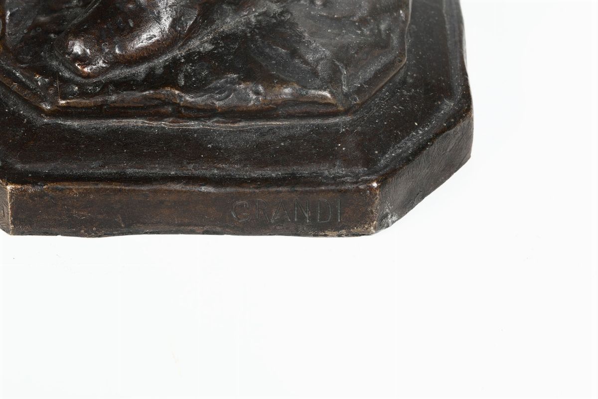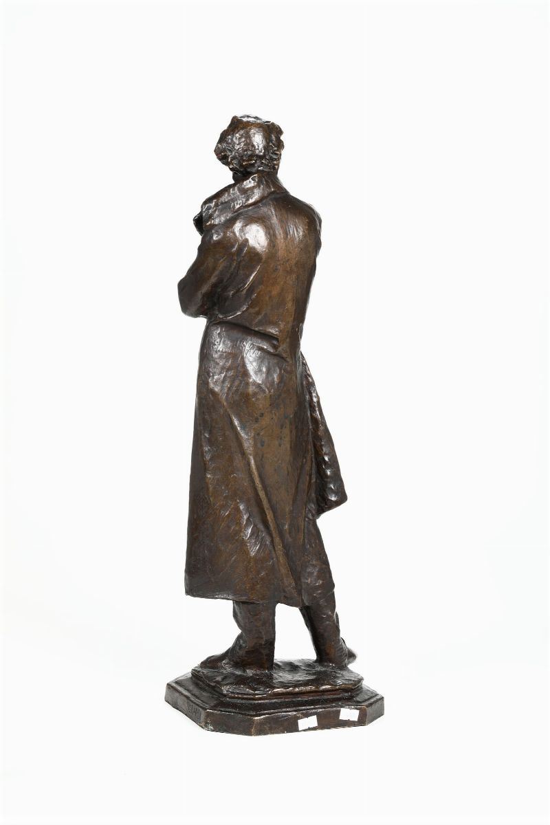 scultura in bronzo, cm 67,5x23x20, firma incussa alla base
