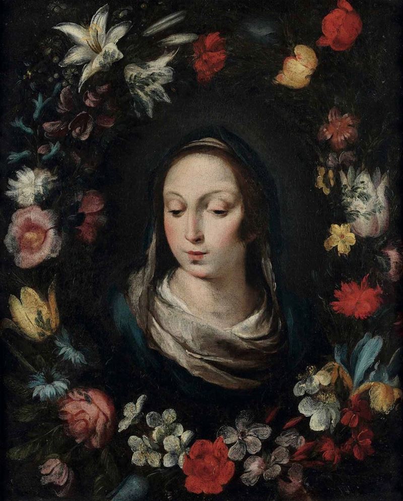 Bernardo Strozzi (1581 Genova - 1644 Venezia) e Jan Roos (1591 Anversa - 1630 Genova) Madonna in una ghirlanda di fiori