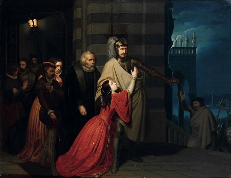 Scuola del XIX secolo Andrea Doria riceve la corona di Genova Partenza per la battaglia di un armigero