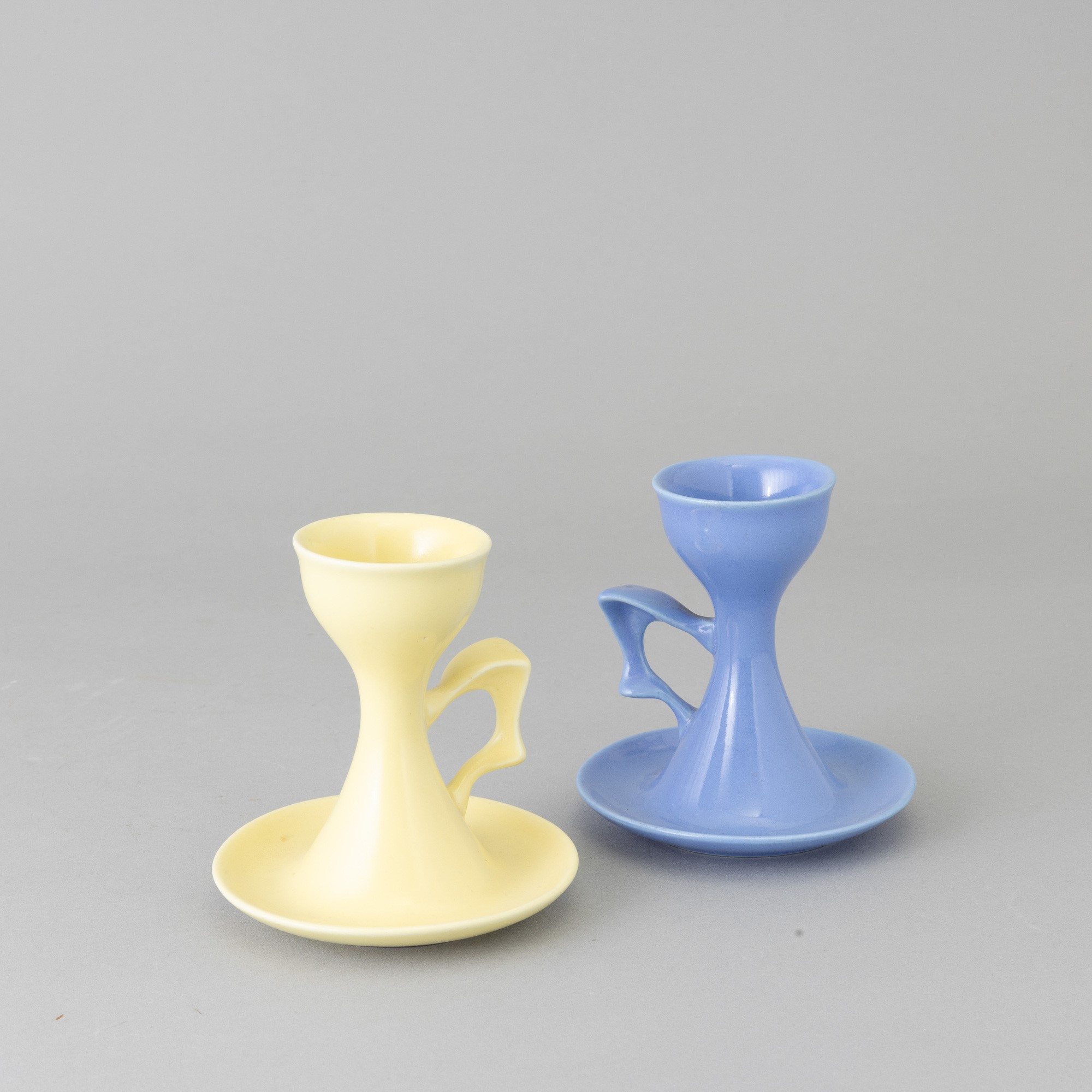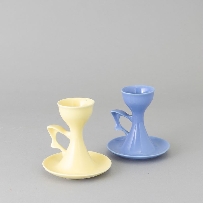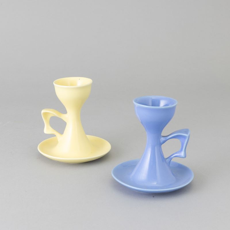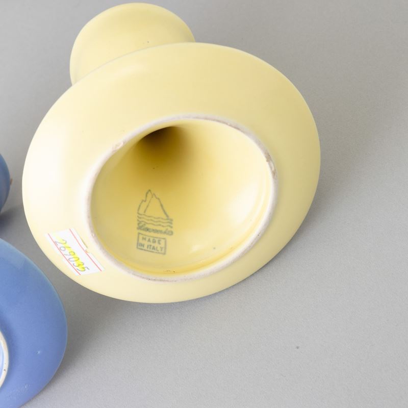 Coppia di porta uova in terraglia a colaggio.
