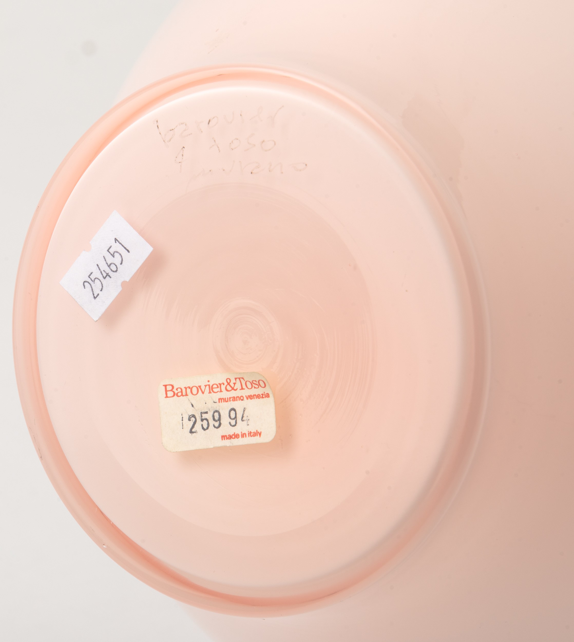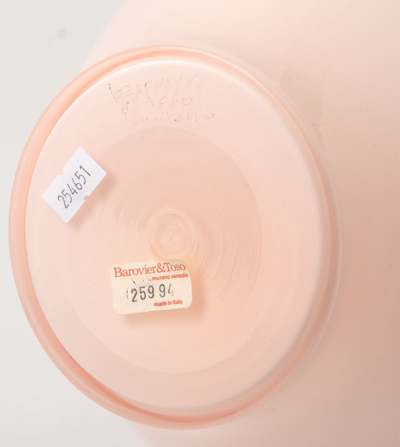 Vaso a balaustra in vetro opalino rosato.