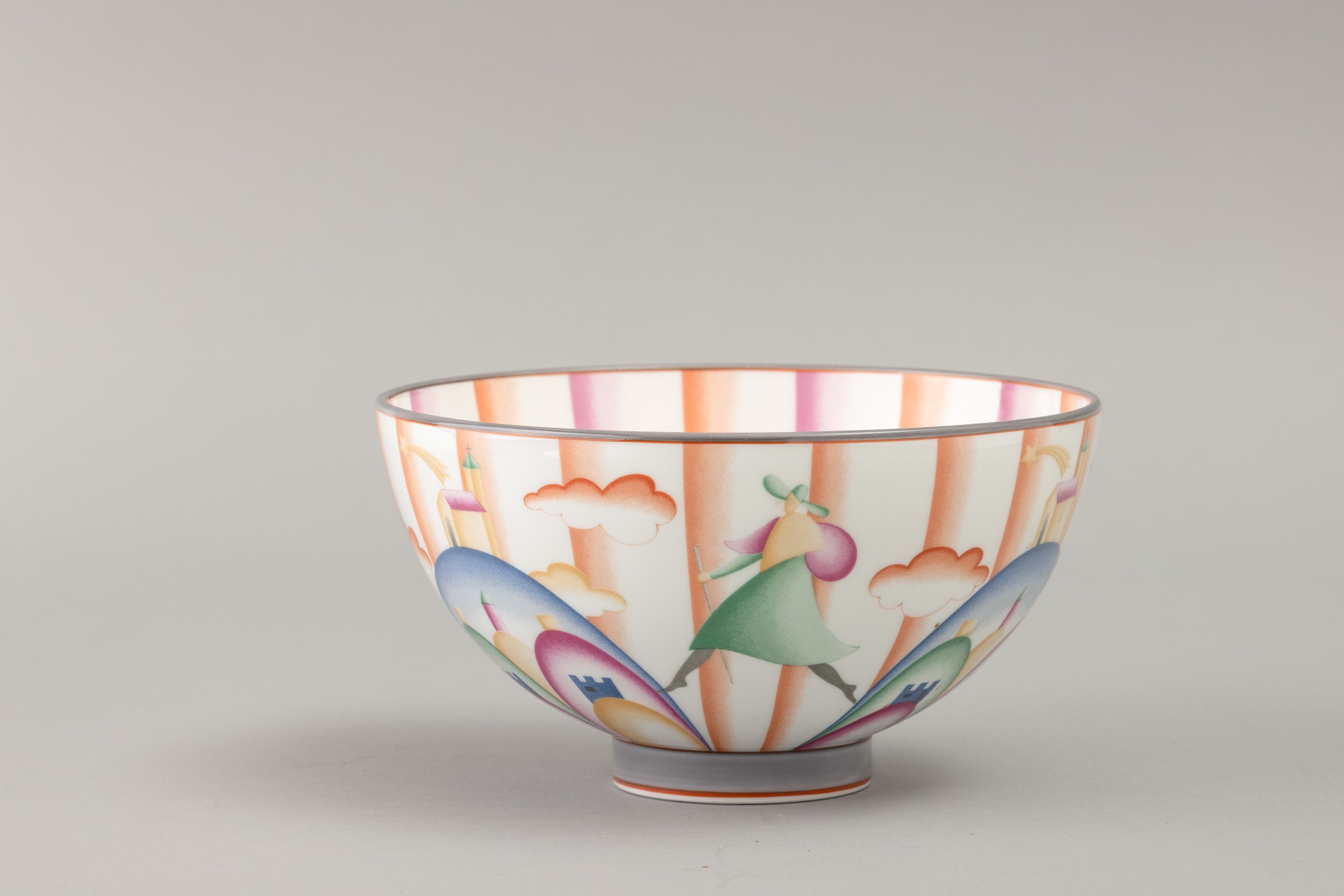 Ciotola in porcellana con decoro policromo raffigurante Il Pellegrino di Montesanto.