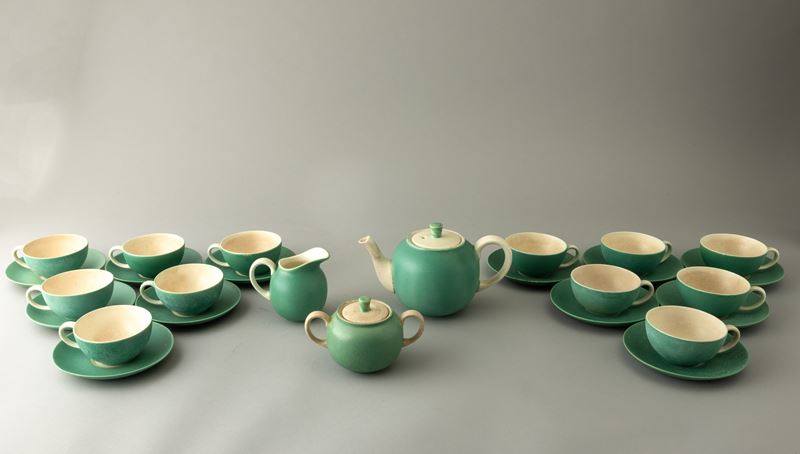 Servizio da tè per dodici formato da: teiera, zuccheriera, lattiera, tazzine e piattini.