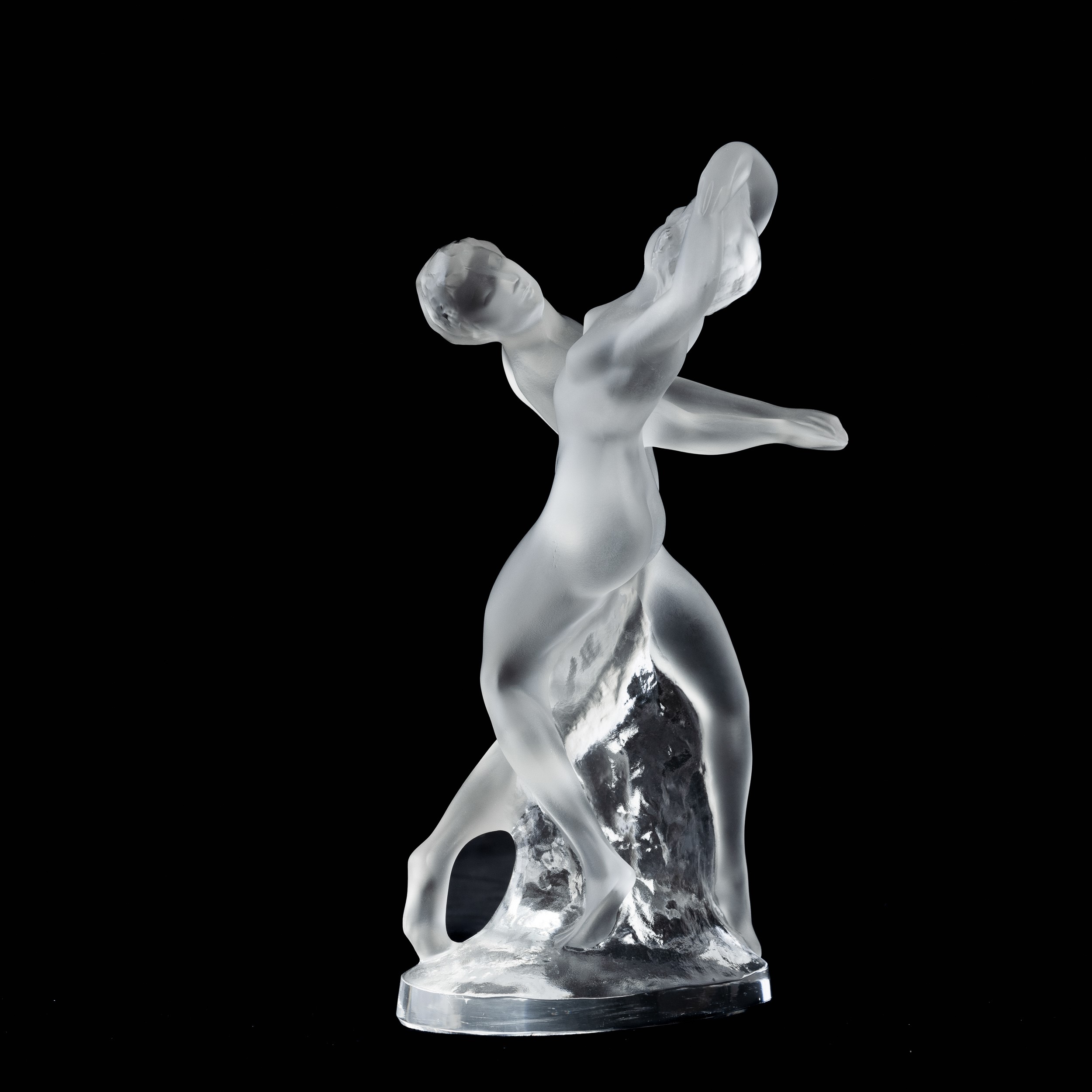 Piccola scultura serie Deux Danseuses in cristallo sabbiato.
