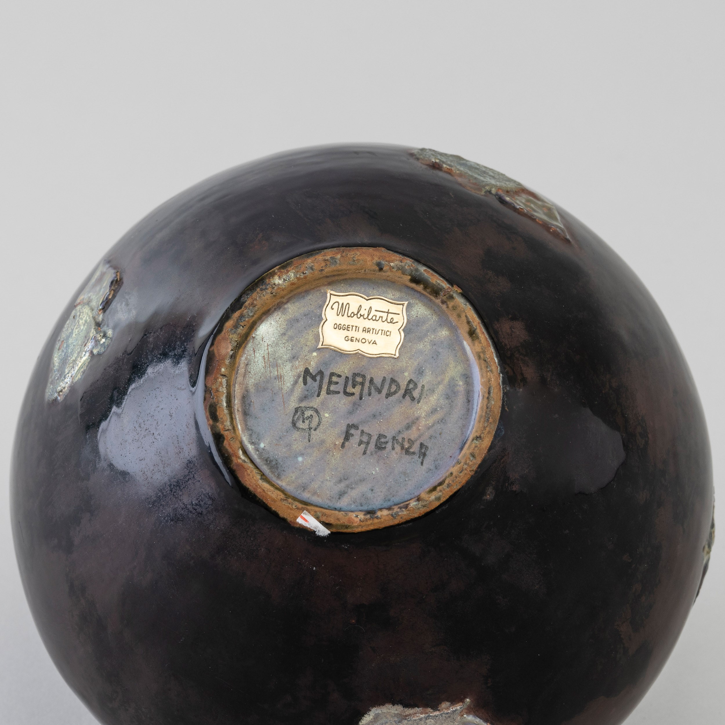 Vaso globulare in ceramica con applicazioni a lustro.