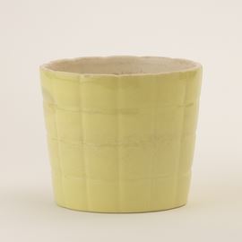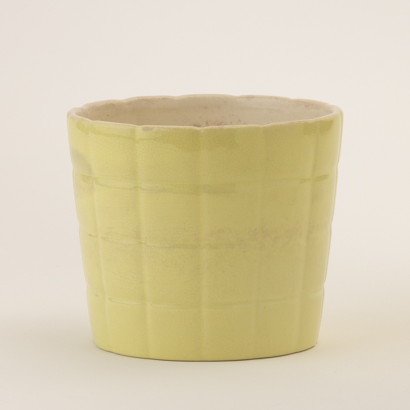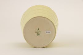 Piccolo vaso circolare in ceramica smaltata color zolfo.
