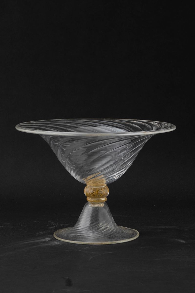 Coppa serie Paris in vetro soffiato a torciglione su alto piede con snodo a sfera decorato in foglia oro