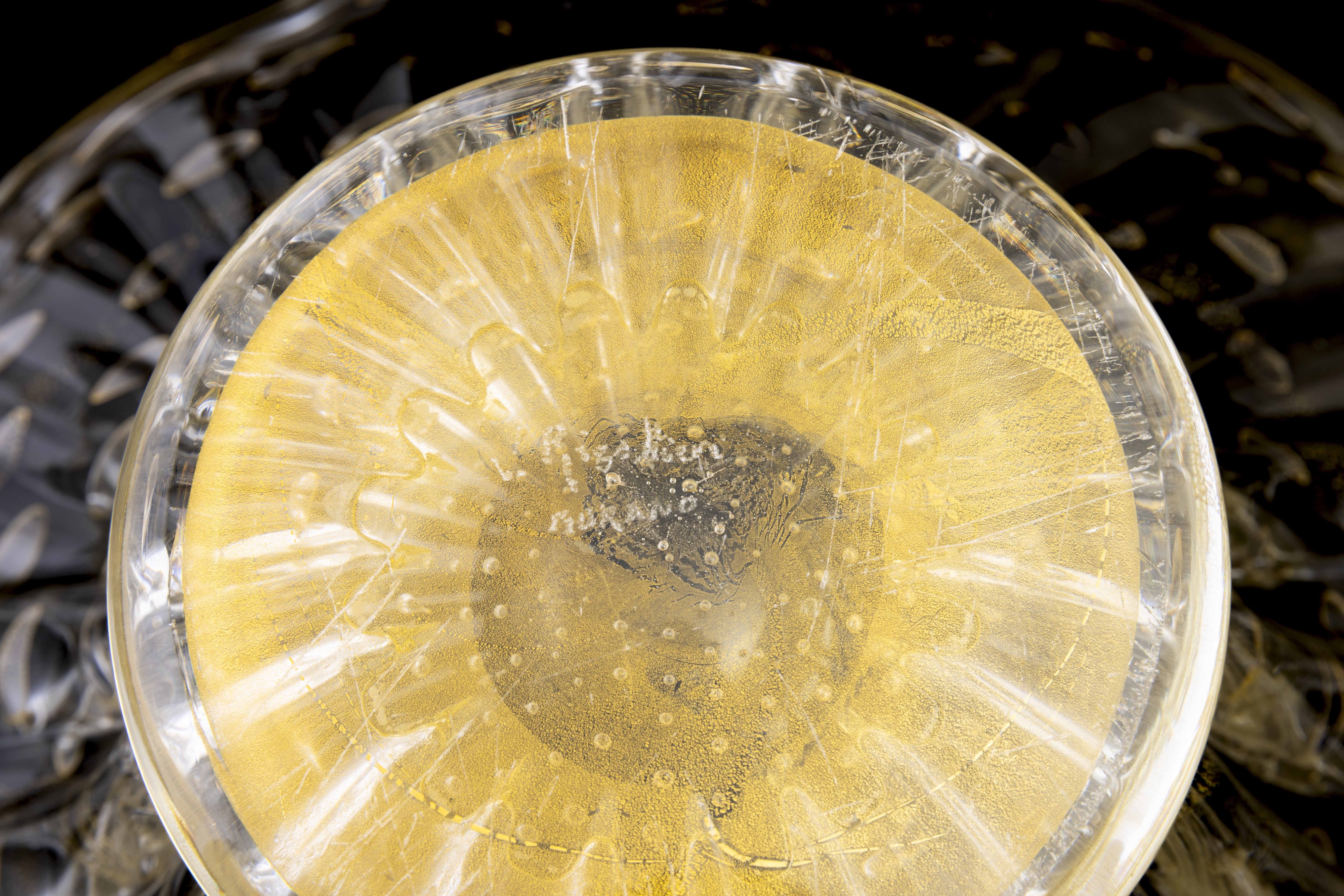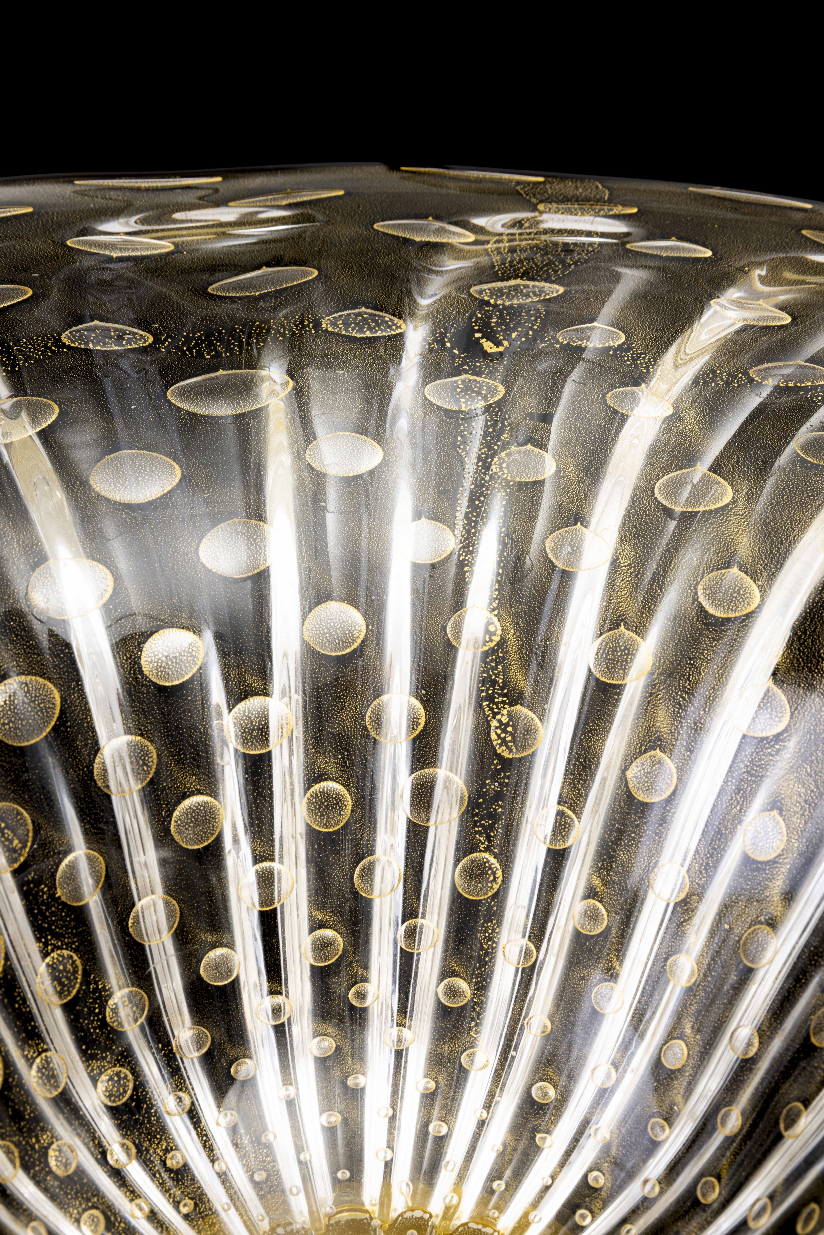 Grande centrotavola in vetro pesante con decoro di bolle.