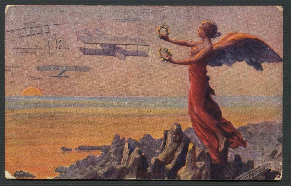 Esemplari che illustrano biplani in volo, una del periodo del Raid Briga-Milano dell'ottobre 1910. Molto belle.