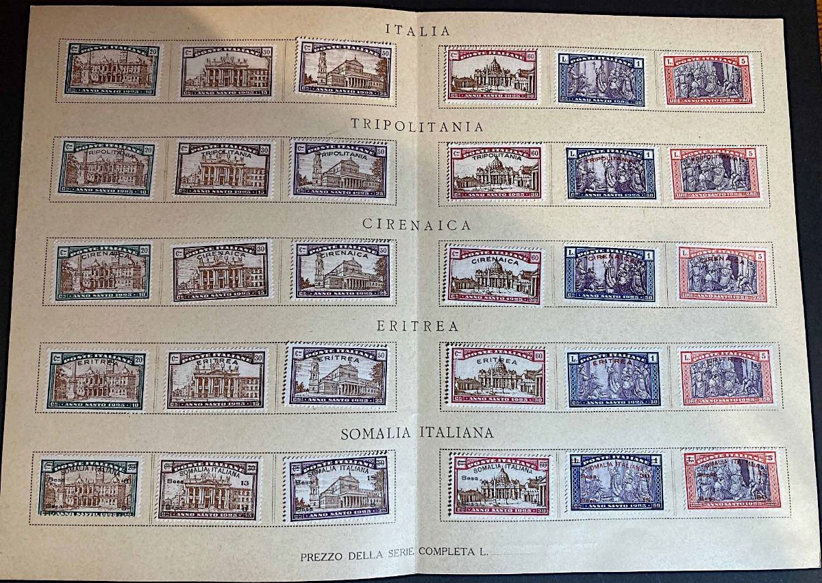 Inviati alle Autorità recanti serie di valore (alcune incollate a fogli con stemma dello Stato) e numerose altre serie incollate a fogli per omaggio. Interessante, da esaminare.