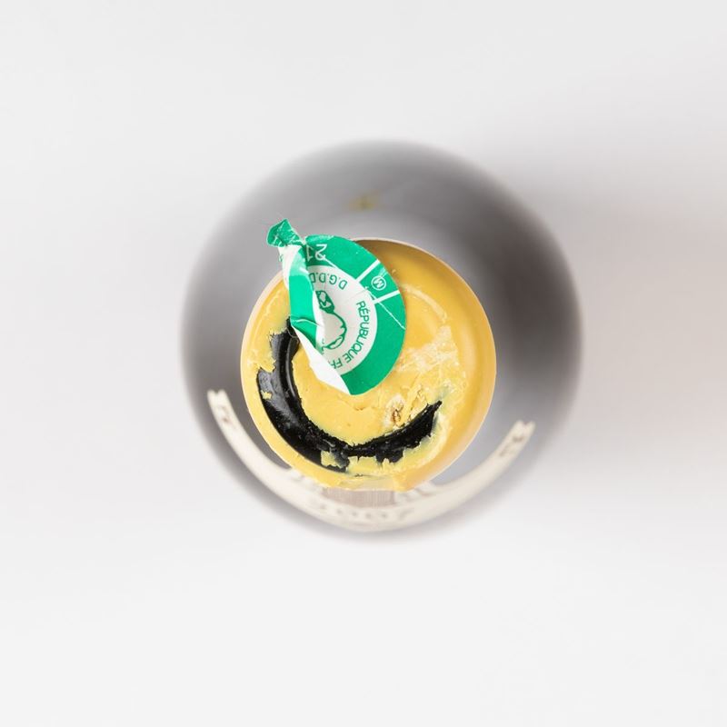 etichetta e capsula con segni d'usura del tempo